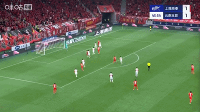 第46分钟,再次领先,刘若钒补射得分,海港2-1